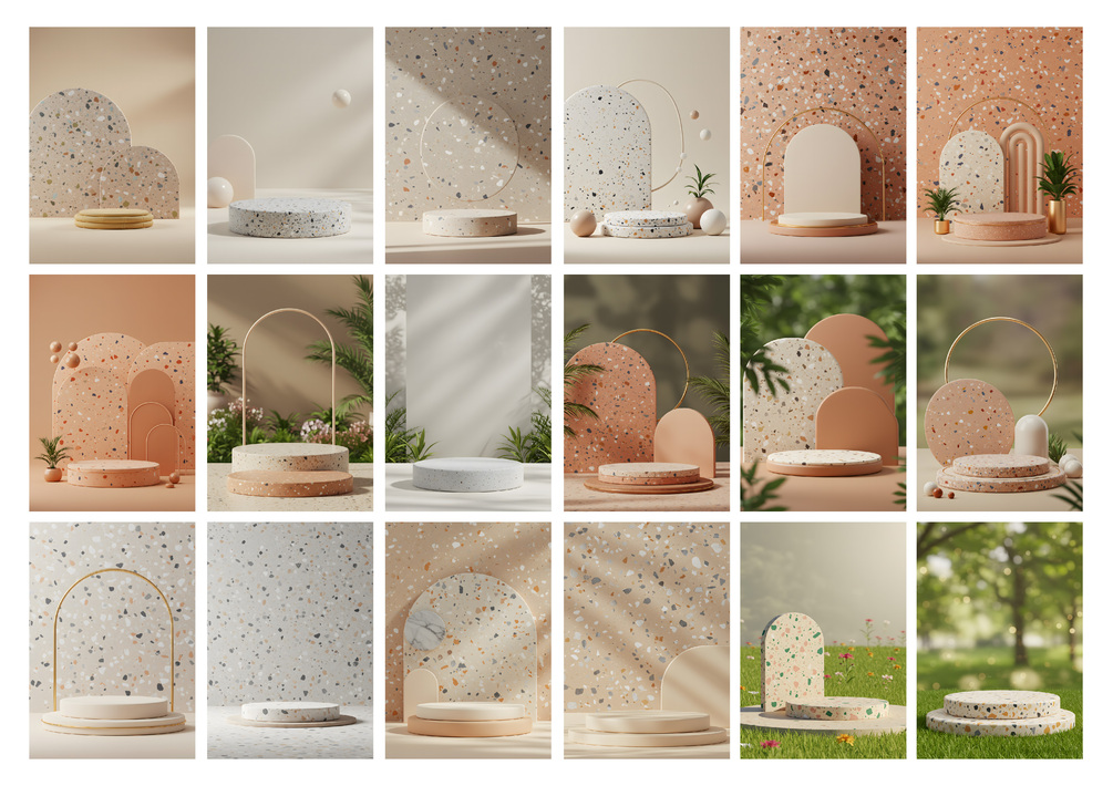 ✔ 50+ Terrazzo-Inspired Backdrops – A diverse selection of backgrounds featuring natural textures, soft lighting, and organic aesthetics.