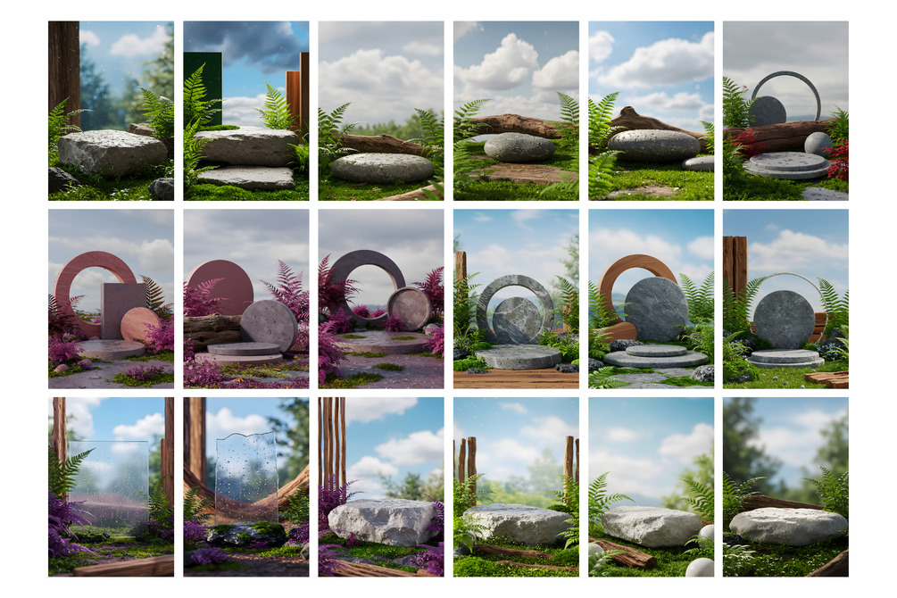 Enhance your product presentations with this Nature Backdrop Image Pack—a collection of 160+ high-quality PNG images designed to showcase your products in a stunning and realistic way.
